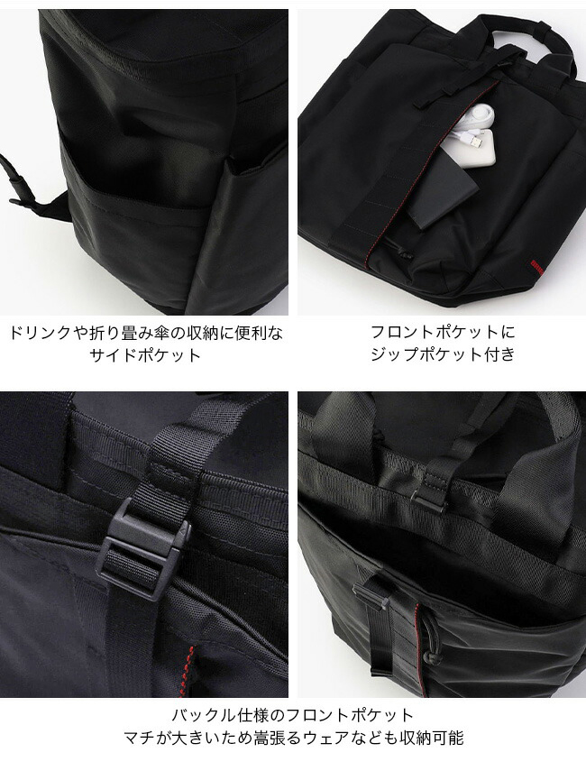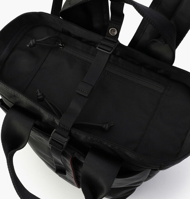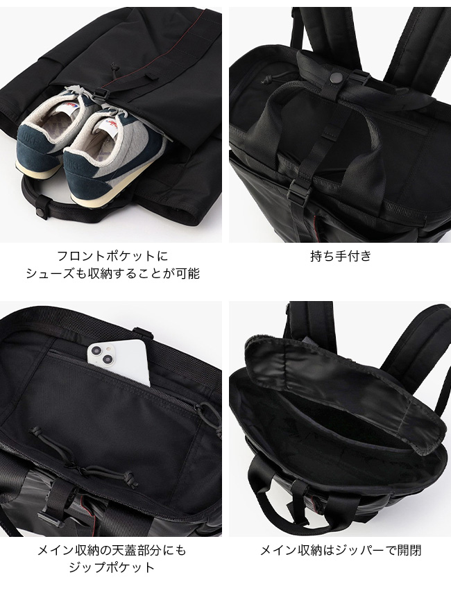 ・バックル仕様のフロントポケットはマチ幅が大きく、シューズなど嵩張るアイテムを収納することが可能。