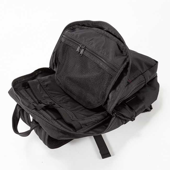 メイン収納部内にPCスリーブやガジェット収納にちょうど良いポケットを配置。PC周りのアイテムをまとめて収納することが可能。