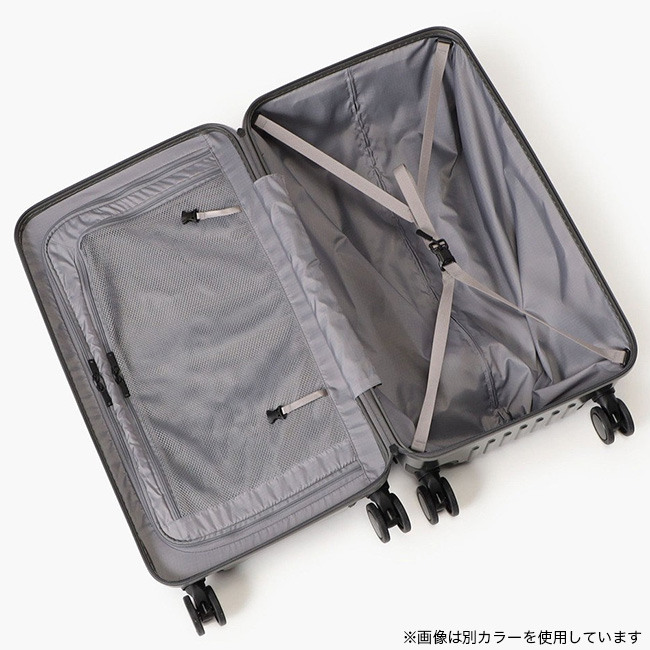 内部は、視認性に優れたメッシュポケットやホテルのウォールポケットとしても使える仕切り板を装備。