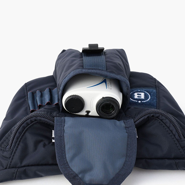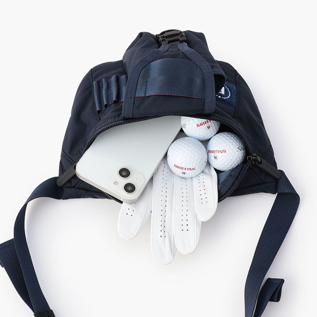 小物の持ち歩きにも配慮されており、フロントのテープアクセントにはティーを挿すことができ、ゴルフボールや計測器など身の回りの小物をまとめて収納可能なマチ付きポケットを完備しています。