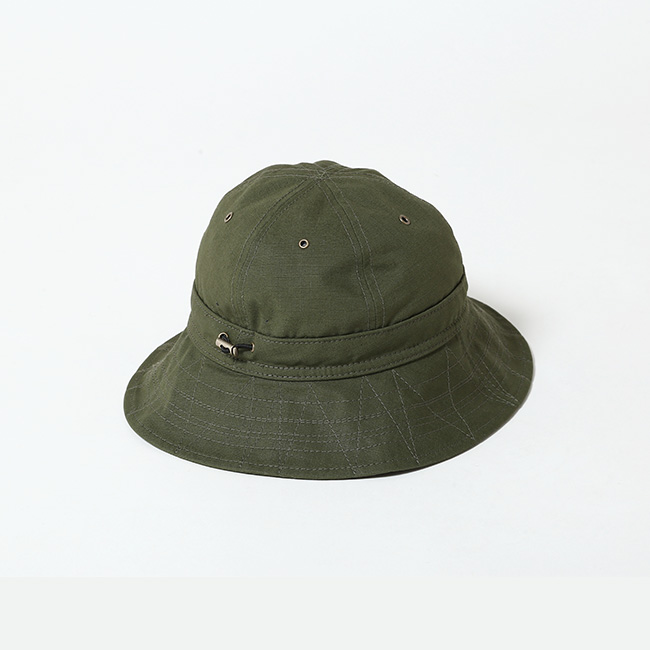 定番的なスタイルに"ランダム"な要素を取り込むことで生まれる違和感と被りやすさを両立させているハットです。ツバ部分のステッチは等間隔ではなくランダムステッチとなっており、それがボーダーのようなデザインとなっています。