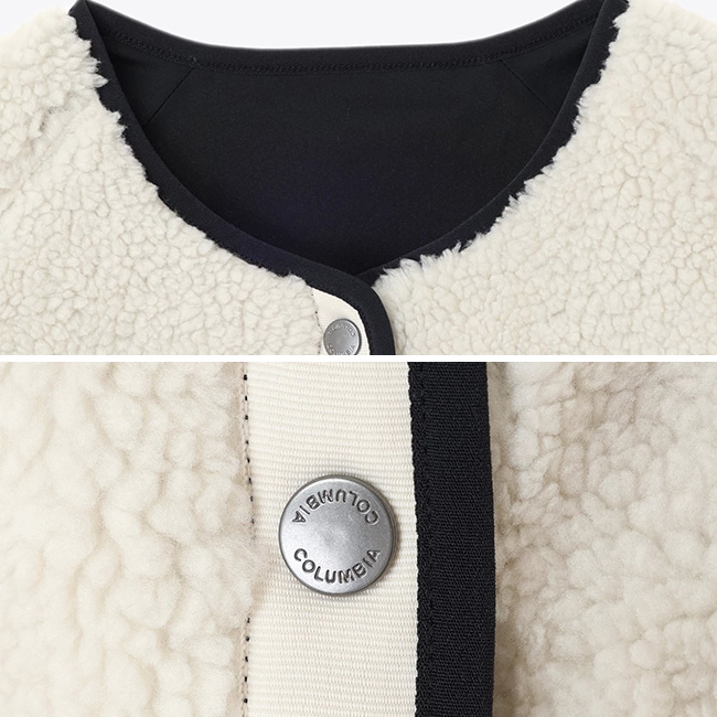 ノーカラー仕様で着回し力の高い、リバーシブルジャケット。ふんわりタッチのフリース面は、適度な保温力と快適な着心地が魅力的。