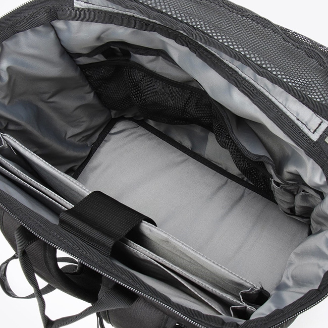 ・メインコンパートメント内部に、ファイル等が整理整頓できる3層のドキュメントスリーブ(PCは13インチ対応)