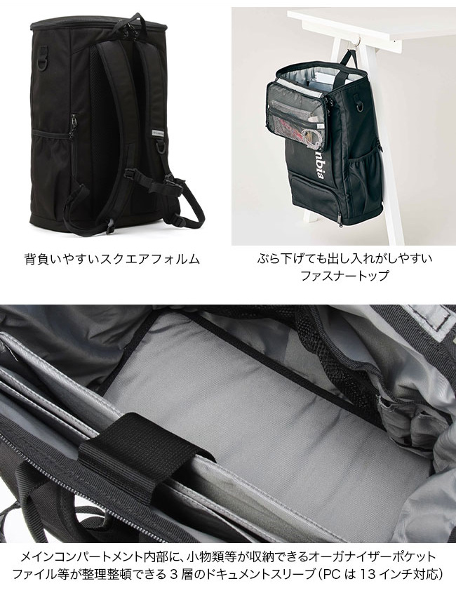 独自のはっ水機能「オムニシールド」を備えた、使い勝手と機能性に優れたアイテムです。背負いやすいスクエアフォルムの本体には、13インチまでのPCやファイルが整理できる3層のドキュメントスリーブや、オーガナイザーポケットを備えたメインコンパートメントを搭載。