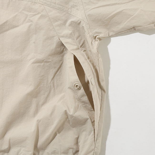 サンプロテクション機能「オムニシェイド」を備えており、日焼け防止にも最適です。首元にフードが収納されているため、急な雨にも素早く対応することができます※。