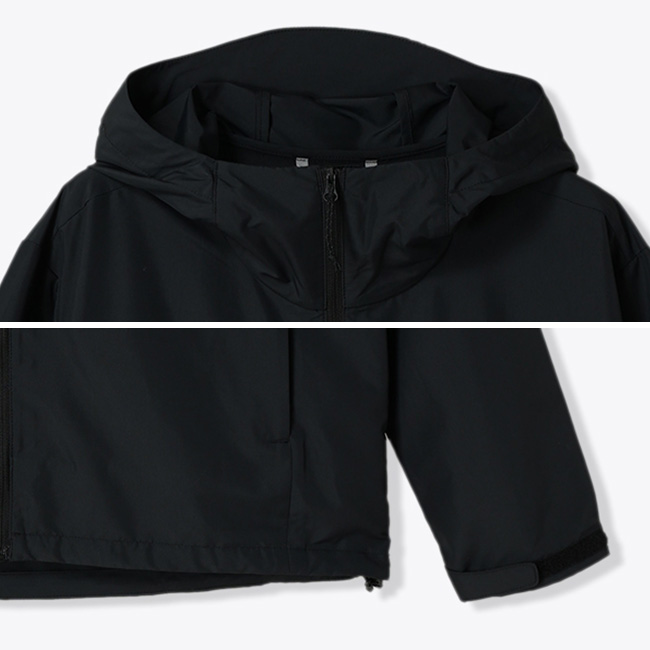 ・フード後部や裾はワンアクションでサイズ調整ができるドローコード仕様