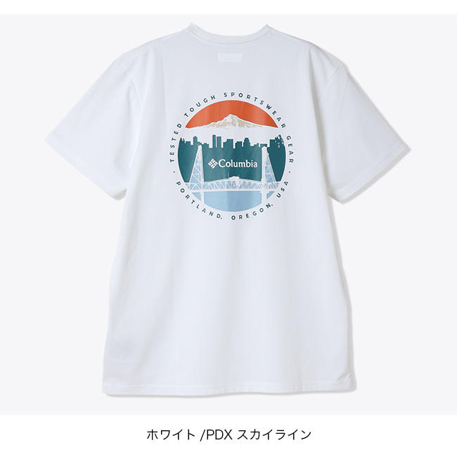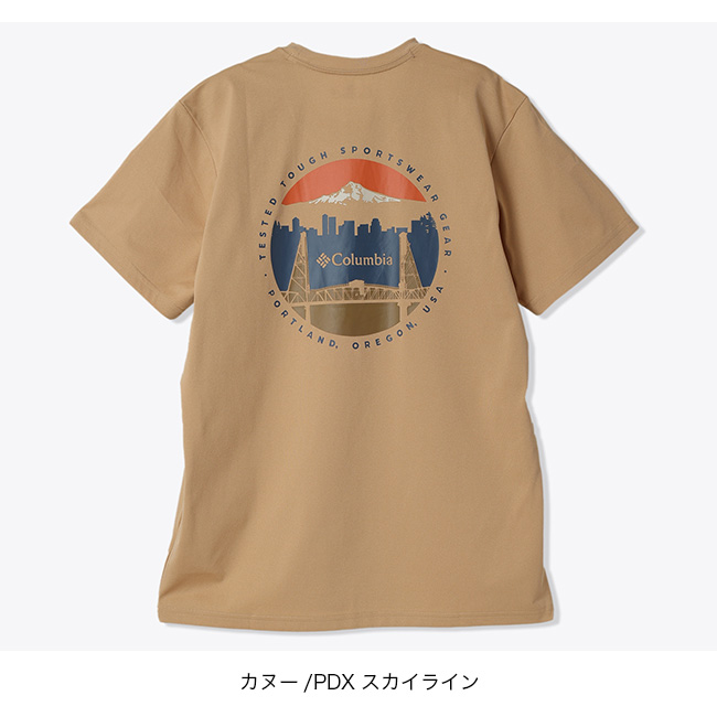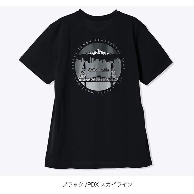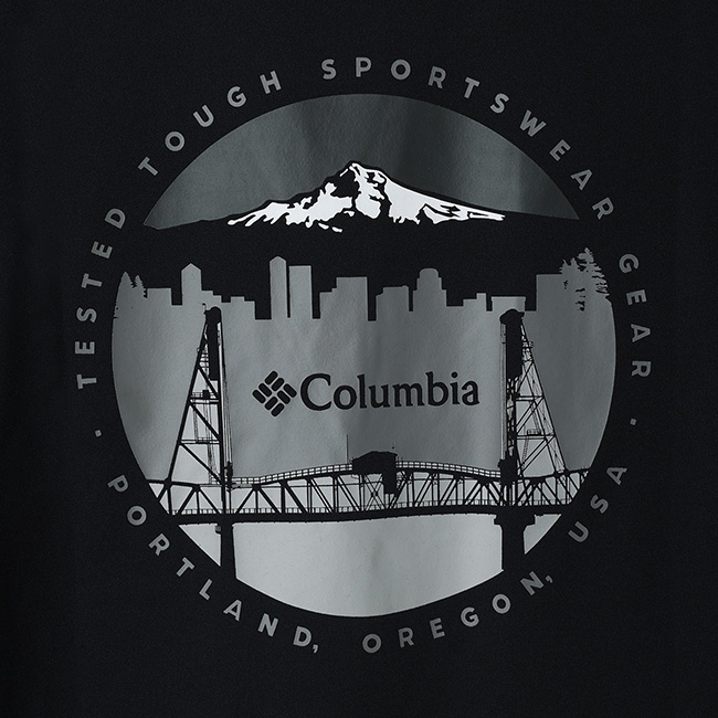 オレゴン州ポートランドのランドマークをバックスタイルに描いたグラフィックTシャツ。吸湿速乾機能「オムニウィック」が、汗を素早く吸収・発散し、ドライで快適な着心地を提供します。