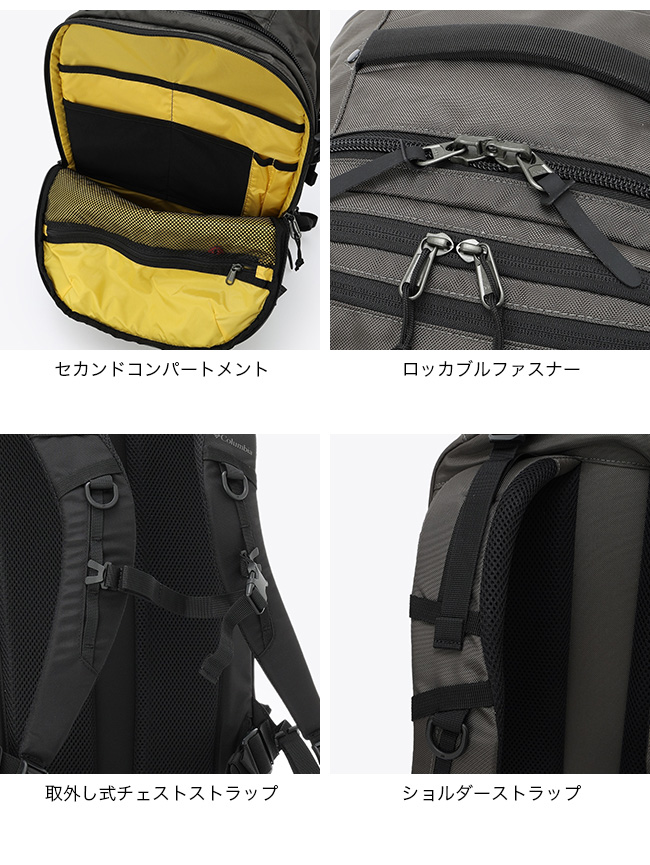コロンビア独自のはっ水機能「オムニシールド」を備え、突然の天候変化にも対応可能です。今シーズンはトップとボトムのフォルムデザインを逆にすることで、置いた時の安定性を確保。