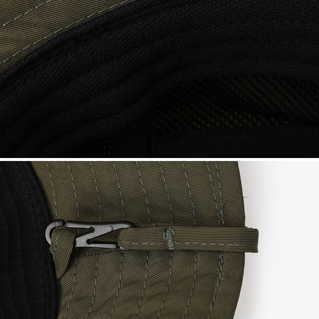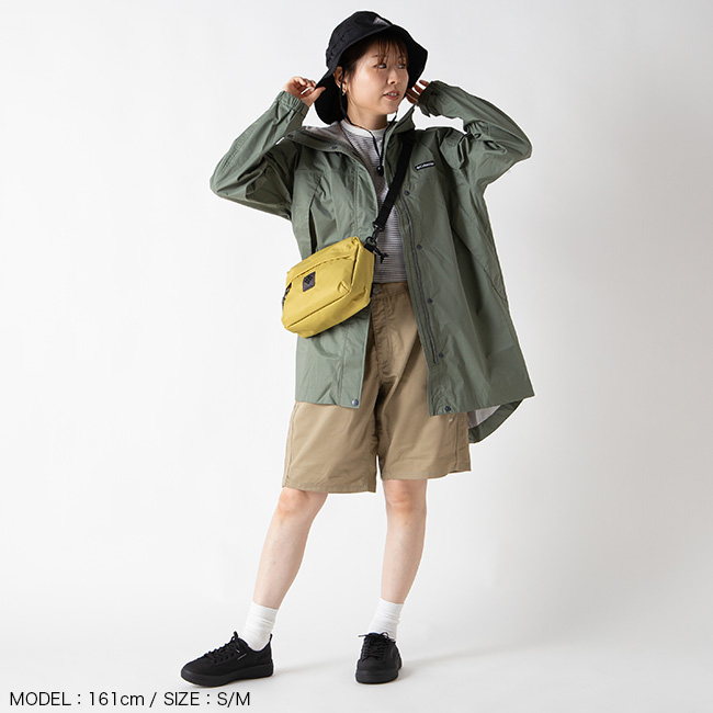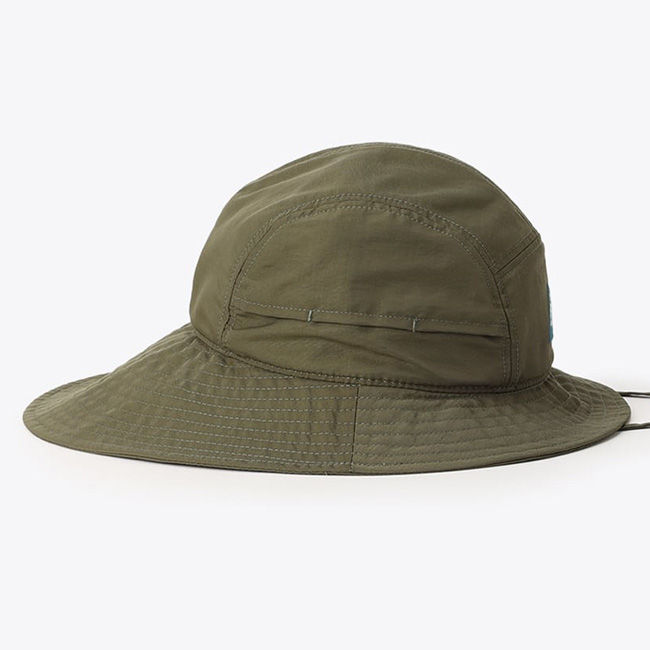 サイドには小物が入れられる小さなマルチポケットやサングラスホールにもなるベンチレーションが付いたアウトドア感たっぷりのデザイン。素材には軽量で耐久性のある素材、タスランナイロンを使用しているため、シワになりにくくお手入れも簡単。