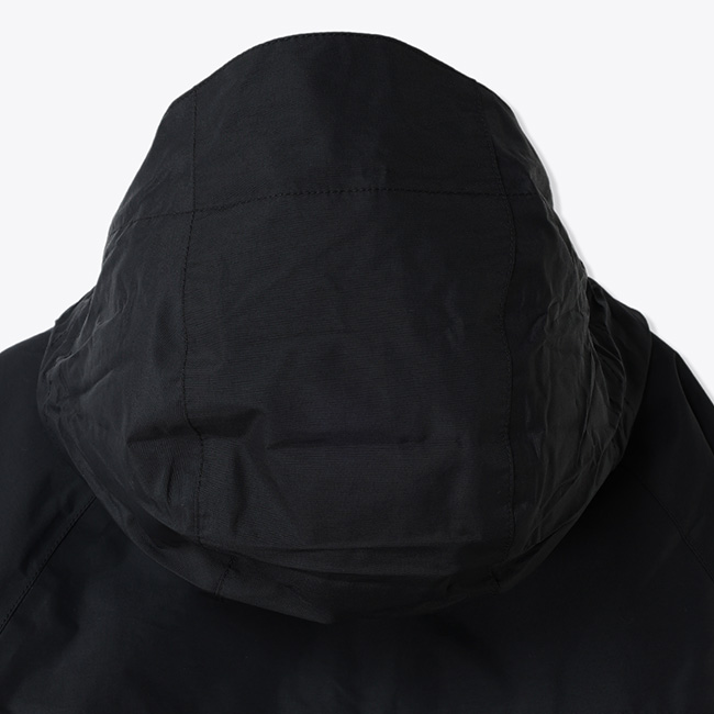 ・フード後頭部、首元、裾:フィット感を調整できるドローコード
