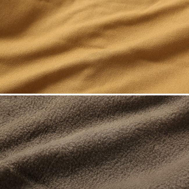 ・保温性を高める、暖かくて軽やかな中わたと、裏地のフリース素材