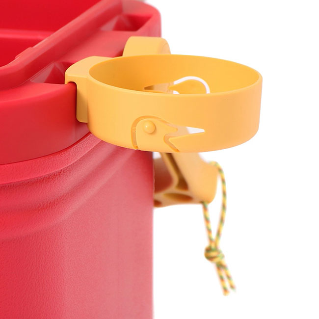 蓋の裏にはドリンクホルダーが内蔵しており、取り外してクーラーボックスの縁に取り付けることが可能。