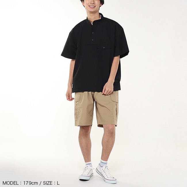 実用的なカーゴポケットや貴重品の携行に役立つ隠しポケットを配し、アクティブシーンでも活躍するひと品。