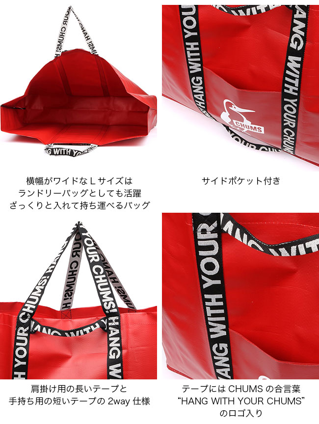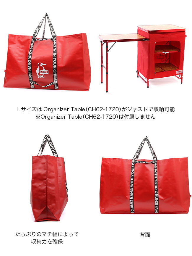 ■ブランド名:CHUMS ■商品名:ブービーキャンプトートL ■商品型番:CH60-3774 ■カラー:レッド【CH60-3774-R001】 ■サイズ:H 56 X W 86 X D 20cm ■素材:Polypropylene100% ■重量:- ■生産国:中国 ■仕様:LサイズはOrganizer Table(CH62-1720)がジャストで収納可能 たっぷりのマチ幅によって収納力を確保 肩掛け用の長いテープと手持ち用の短いテープの2way仕様 テープにはCHUMSの合言葉“HANG WITH YOUR CHUMS”のロゴ入り フロントにはブービーバードロゴをプリント ※ご注文の前に必ずご確認ください※ 本製品は紙のような特性の素材を使用しているため、揉みシワ、折りシワが残ることがあります。あらかじめご了承ください。