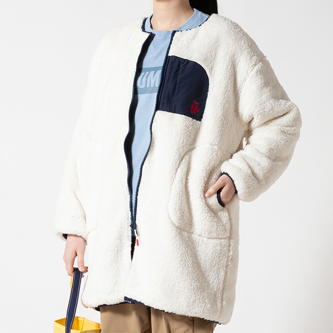 チャムス エルモフリースリバーシブルブルゾンロング CHUMS Elmo Fleece Reversible Blouson Long レディース ウィメンズ CH18-1314 アウター ジャケット ロングコート 重ね着 デイリーユース おしゃれ キャンプ アウトドア