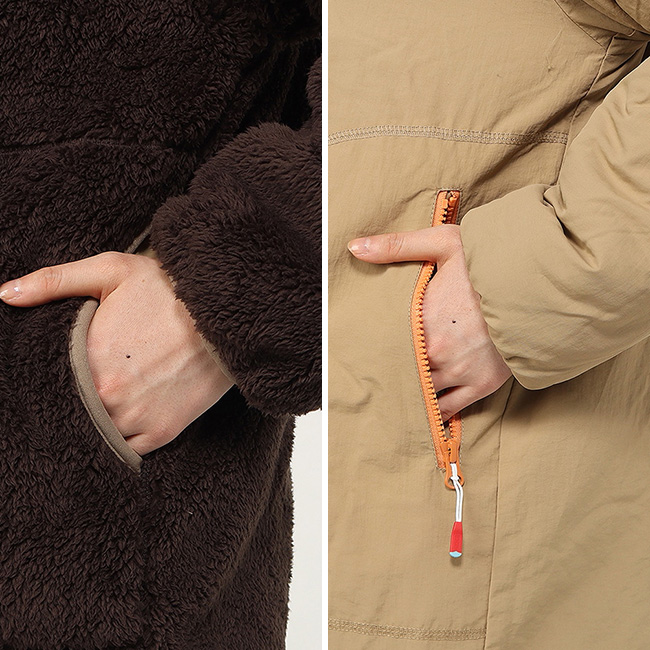 ・フリース面:左胸部にファスナーポケット、両腰にポケット