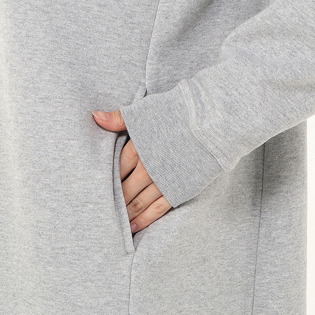 裏起毛素材で暖かく、体のラインを拾わないゆったりとした着心地が魅力。