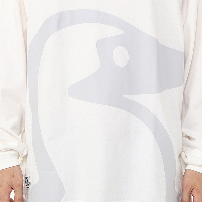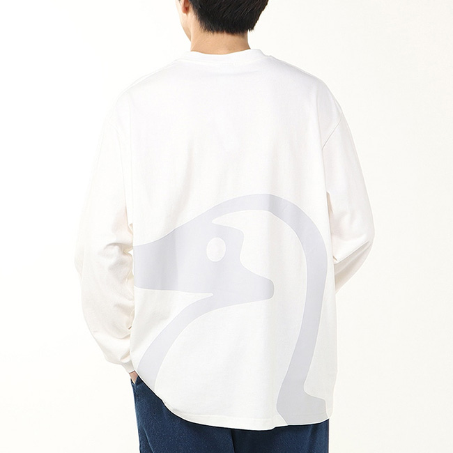 ゆったりとしたオーバーサイズシルエットのロングスリーブTシャツ。前面と背面にはみ出すほど大きなブービーバードをプリント。