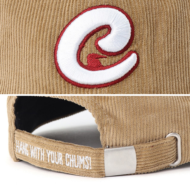 CHUMSの頭文字「C」の立体刺繍がアクセント、秋冬らしい表情が魅力のコーデュロイ素材のキャップ