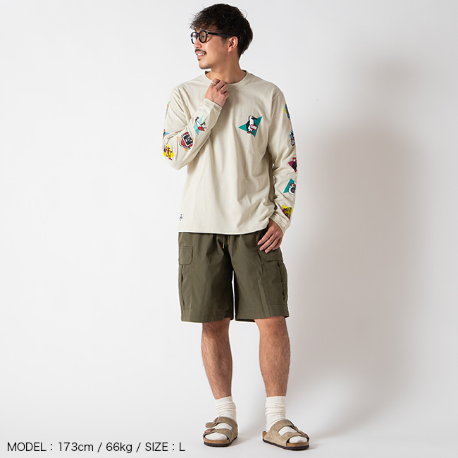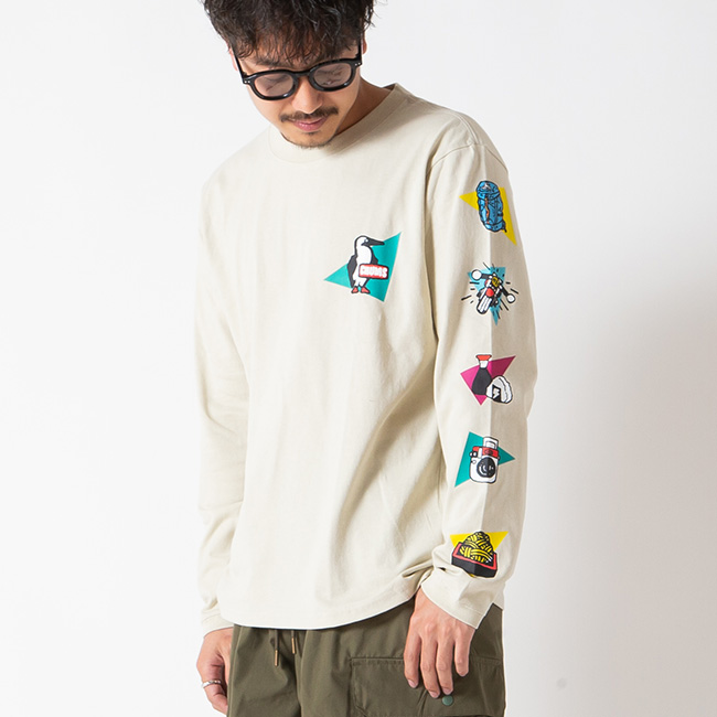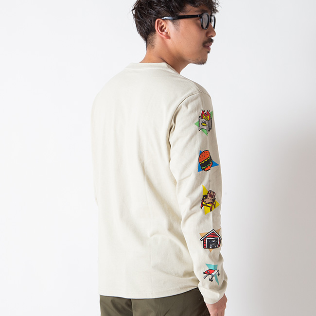 かせきさいだぁ氏がCHUMSのシーズンテーマ『LOVE & ADVENTURE』から連想したものを描いた「アラカルト」のデザインを落とし込んだロングスリーブTシャツ。両袖にはアラカルト柄を、フロントには同氏が描きおろしたブービーバードをレイアウトし、キャッチーな雰囲気に仕上がりました。