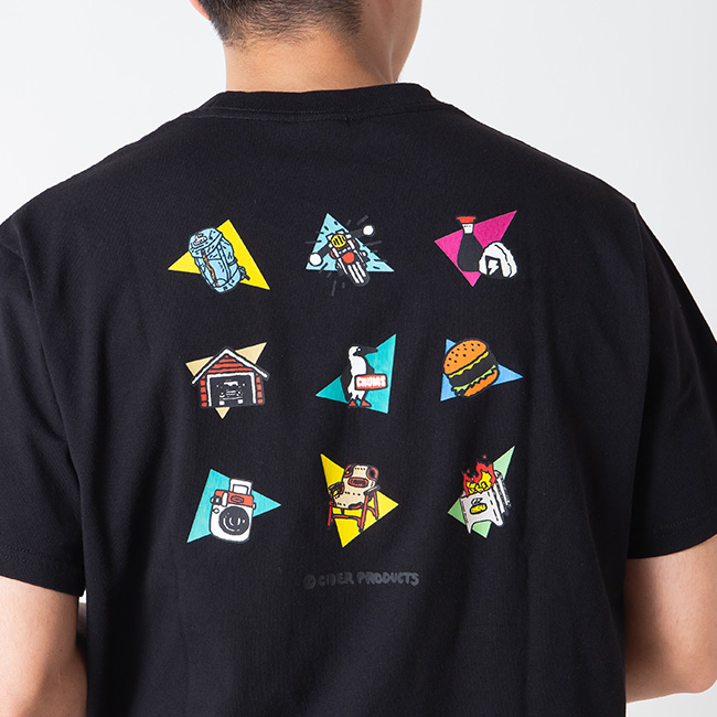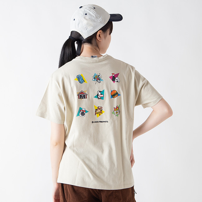 かせきさいだぁ氏がCHUMSのシーズンテーマ『LOVE & ADVENTURE』から連想したものを描いた「アラカルト」のデザインを落とし込んだTシャツ。左胸には同氏がブービーバードになった「Booby さいだぁ」をワンポイントで配し、背面にはアラカルト柄を大胆にレイアウト。