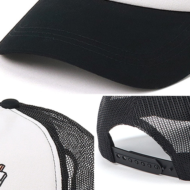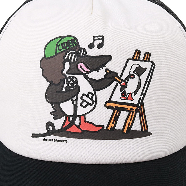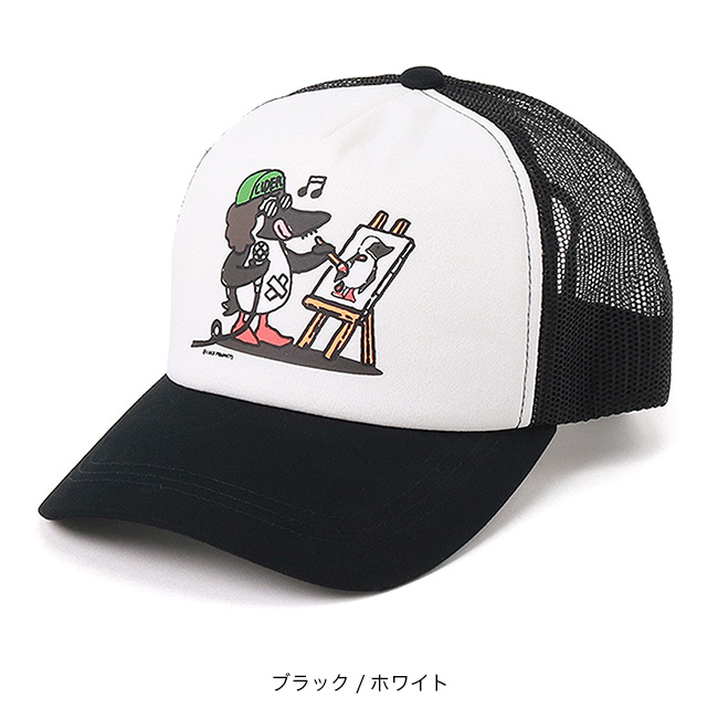 フロントにかせきさいだぁ氏のデザインを施したメッシュキャップ。“Black/White”には「ブービーさいだぁ」、“Black”には「Classic」のデザインをレイアウト。