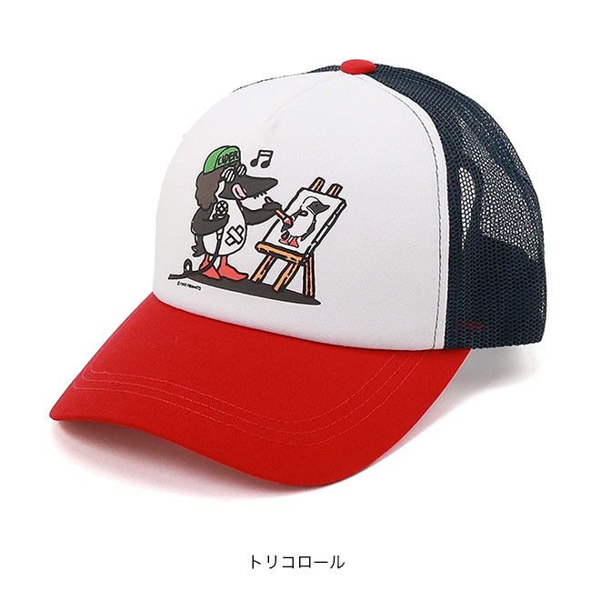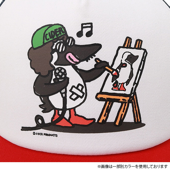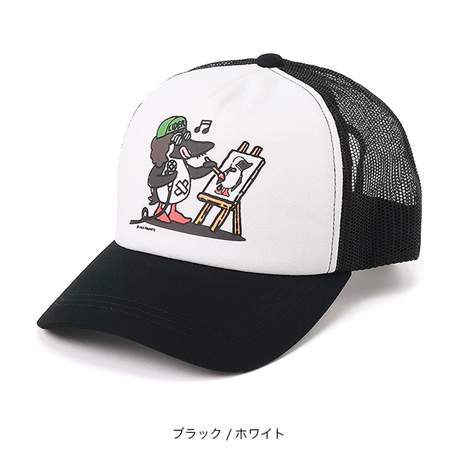 フロントにかせきさいだぁ氏のデザインを施したメッシュキャップ