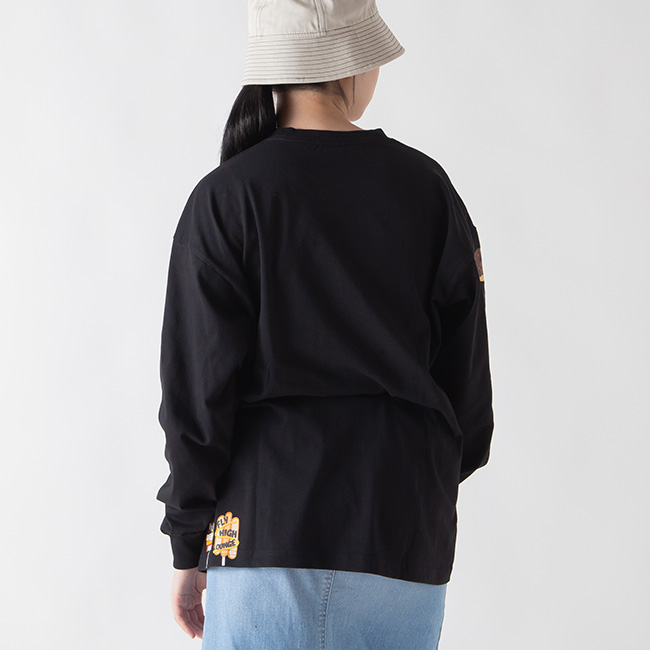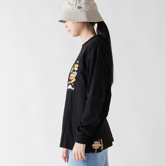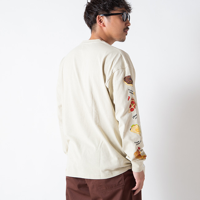おいしそうなファストフードをふんだんに盛り込んだロングスリーブTシャツ。全体的にゆったりしたオーバーサイズシルエットで、袖口にはリブを配備。
