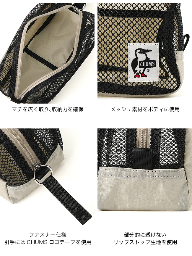 チャムス メッシュポーチ CHUMS Mesh Pouch CH60-3932 アクセサリーポーチ 小物収納 旅行 トラベル 海水浴 おしゃれ キャンプ アウトドア