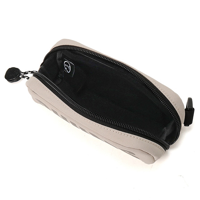 メガネ・サングラスケースとしてもペンケースとしても使いやすい便利なサイズ感のポーチです。使い終えた古着や工場での生産時に出た残反(生地)を原料にした、100%リサイクルポリエステルの「RENU® (レニュー)」を採用。