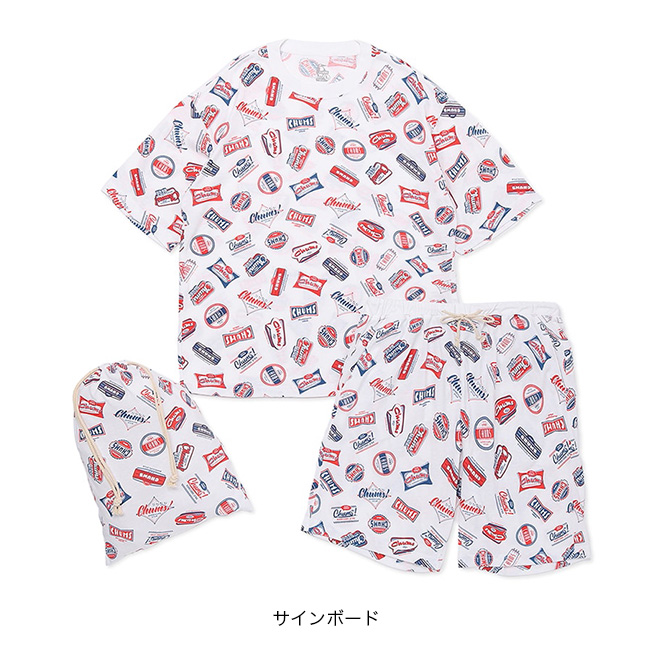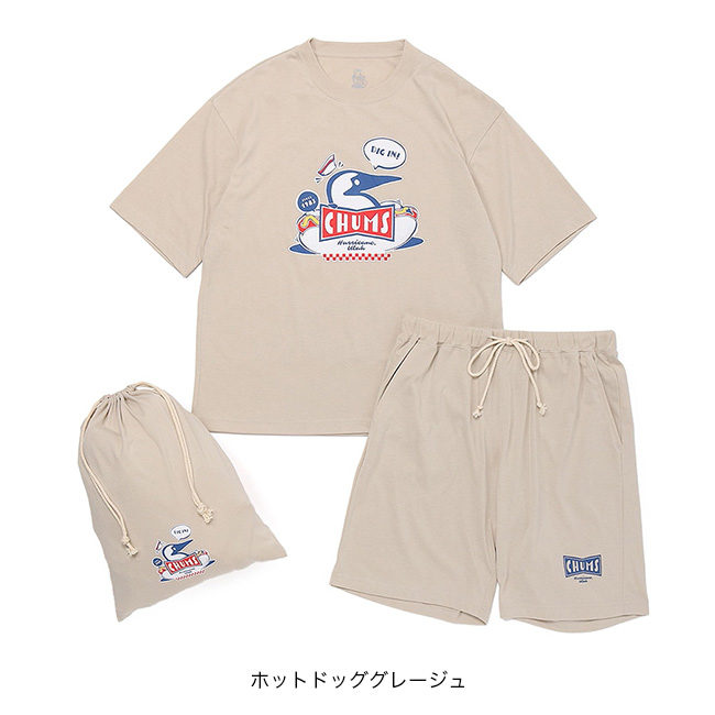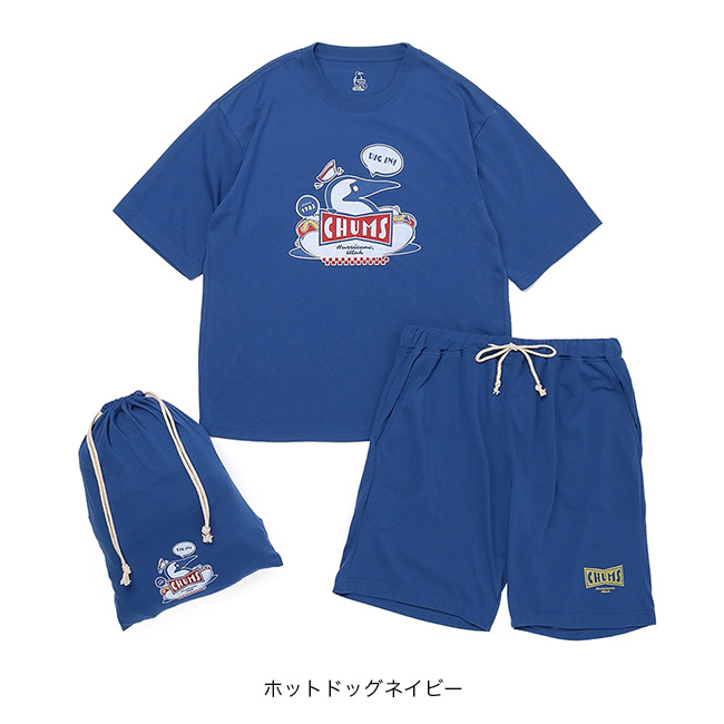アメリカンダイナーをイメージした“CHUMS HOMEシリーズ”のルームウェアセット。半袖Tシャツ・ショートパンツ・収納袋の3点セット。