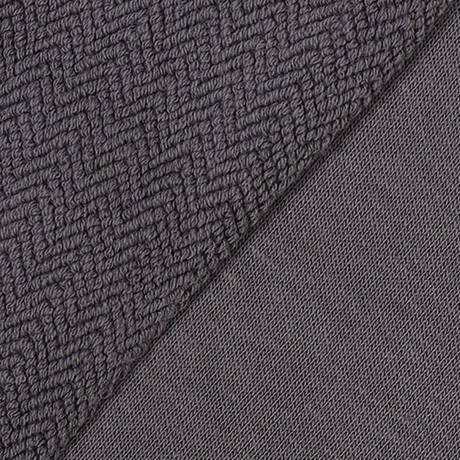 素材は、裏毛生地のパイル面にヘリンボーン柄を施したスウェットシリーズ。