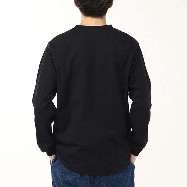ワンポイントロゴがアクセント、着回し力抜群のポケット付きロングスリーブTシャツ
