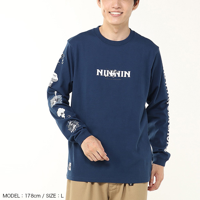 忍者をモチーフにしたあそびゴコロ満載のロングスリーブTシャツ。程よくゆとりのあるボックスシルエット。