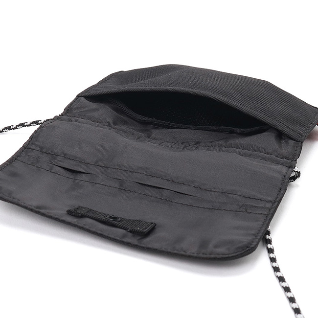 ショルダーロープを外して衣類に直接装着も可能、必需品の持ち運びに便利なミニショルダーポーチ