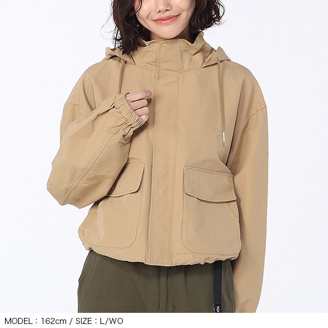 ショート丈×オーバーサイズで女性らしさが引き立つマウンテンパーカー
