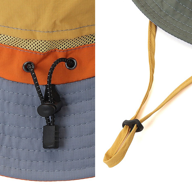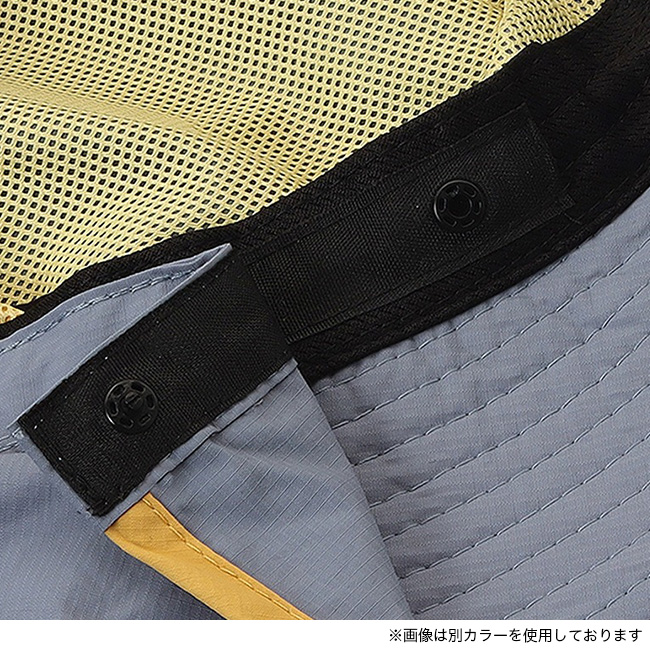 撥水性に優れたナイロンリップストップ生地を使用。頭周りには通気性の良いメッシュ素材を配し、暑い日でも快適なかぶり心地を保ちます。