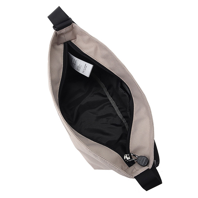 開口部はファスナー仕様で中身が見えにくく、内側には小物整理に便利なポケットを備えています。