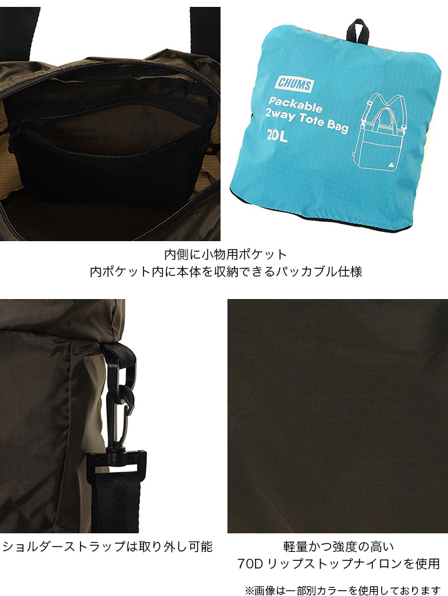 チャムス パッカブル2ウェイミニトートバッグ CHUMS Packable 2way Tote Bag CH60-4135 カバン ショルダーバック 手提げ コンパクト 軽量 旅行 出張 トラベル サブバッグ おしゃれ キャンプ アウトドア