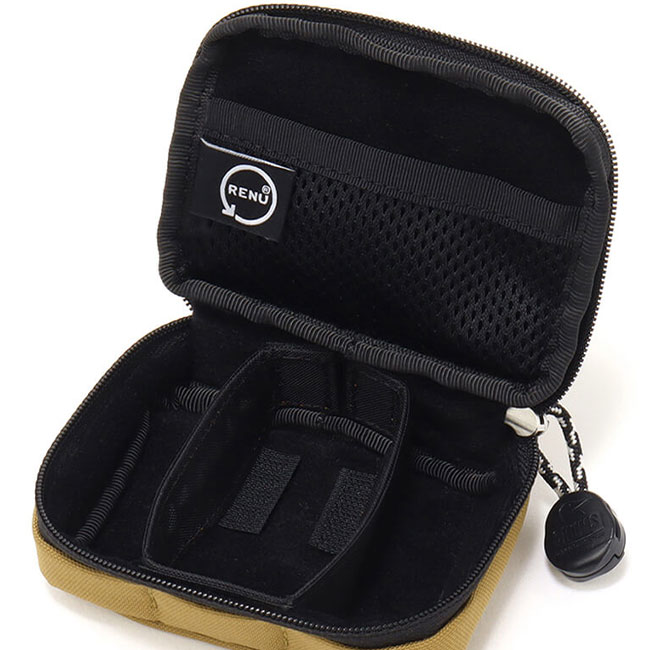 素材は、環境を配慮し、使い終えた古着や工場での生産時に出た残反(生地)を原料にした、100%リサイクルポリエステル「RENU® (レニュー)」を採用。軽量でタフな素材で、デイリー使いはもちろんアウトドアにも気軽に持ち出せます。