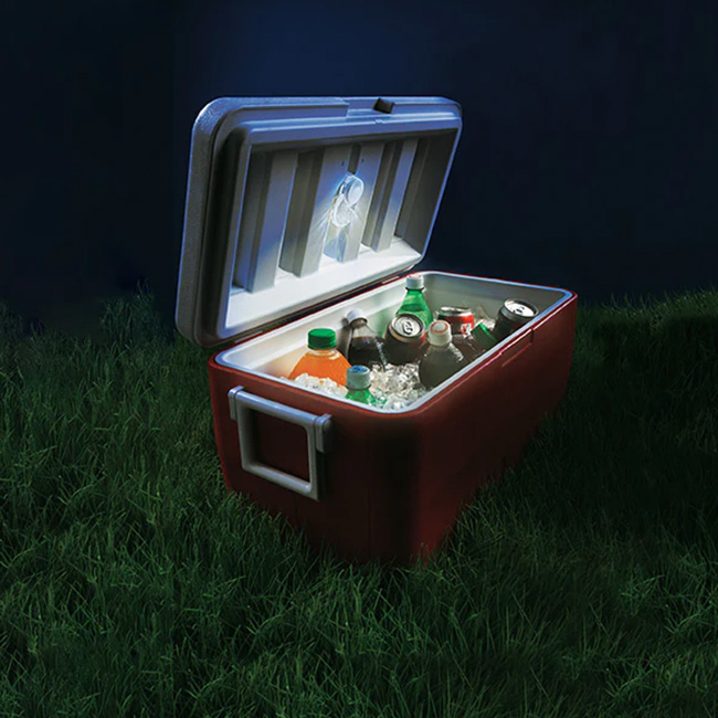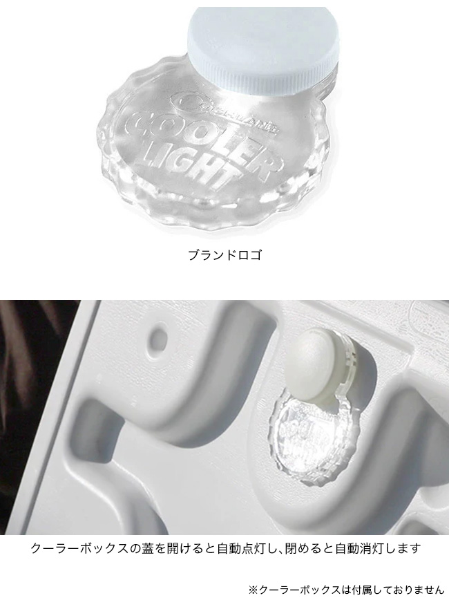 COGHLANS コフラン クーラーライトはご家庭の冷蔵庫の様に夜なってもクーラーボックスの中を照らしてくれるライトです。このライトはクーラーボックスの蓋を開けると自動点灯し、閉めると自動消灯します。