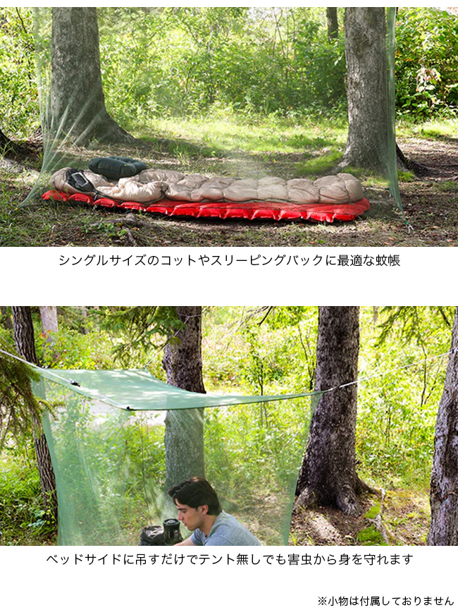 COGHLANS コフラン レギュラー モスキートネットはシングルサイズのコットやスリーピングバックに最適な蚊帳です。ベッドサイドに吊すだけで、テント無しでも害虫から身を守れます。