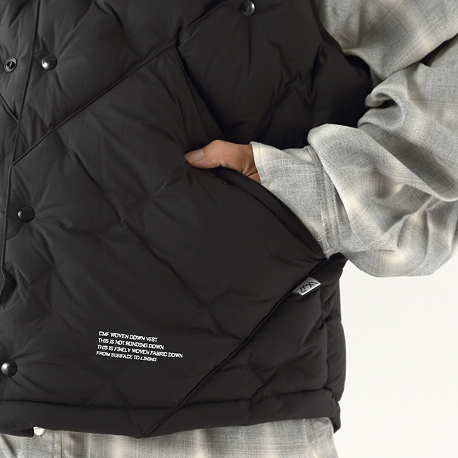 CMF INNER DOWN released every season.This season features a new technique called CMF WOVEN,where the outer and inner fabrics are woven in an X-pattern,and down (DOWN 90 FEATHER 10 700FP) is inserted without the need for down packs.Unlike traditional pressed-down jackets,which deteriorate over time and accumulate down in certain areas,this technique holds the down in place with weaving, preventing such issues.