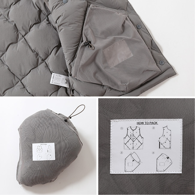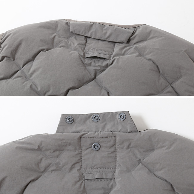 今期は「CMF WOVEN」と名付けた表地と裏地をX字に織り合わせる独自構造を採用し、ダウン(DOWN 90%、FEATHER 10%、700FP)を直接封入することで、従来必要だったダウンパックを不要としました。
