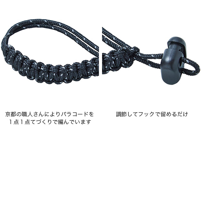 京都の職人さんによりパラコードを1点1点てづくりで編んで製作しています。付属が少ないので首元で快適におしゃれにお使いいただけます。