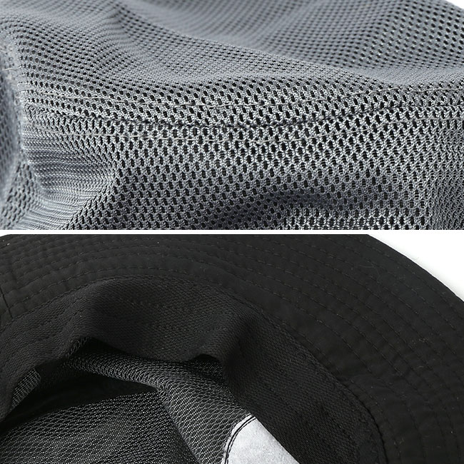 夏の日差しをさえぎる大き目のツバと、ハット全体を透け感が少なく風通しの良いメッシュでデザインされています。