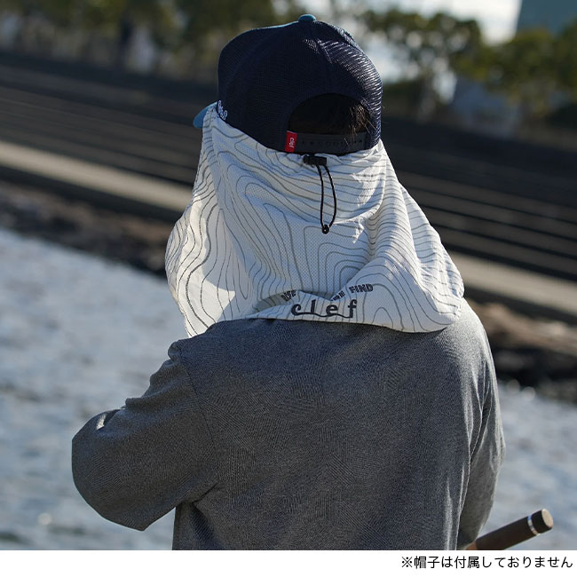 通気性重視で後頭部のみのランニングスタイルから、顔の正面でボタンを留めるフェイスガードスタイルにして日差しや虫などを防ぐ使い方が可能。