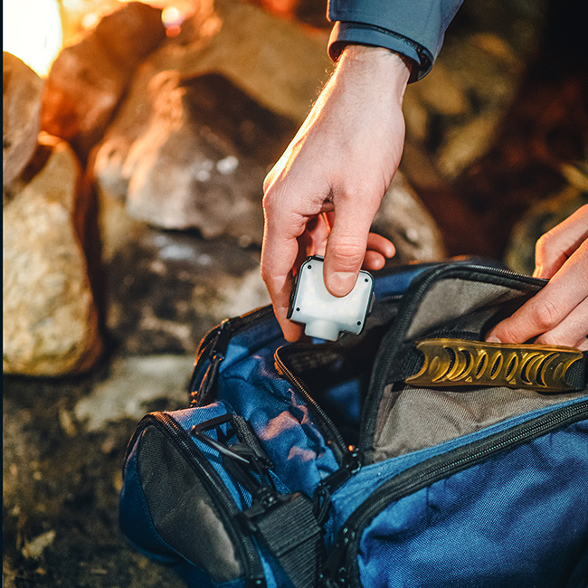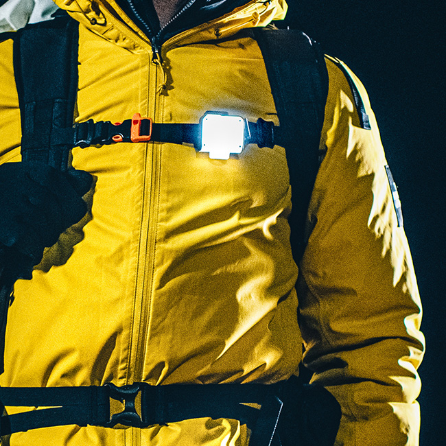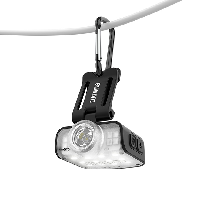 帽子やヘルメットにクリップを差し込んでヘッドライトの代わりにしたり、付属のカラビナを使用することで吊り下げてランタンとしても使用可能。