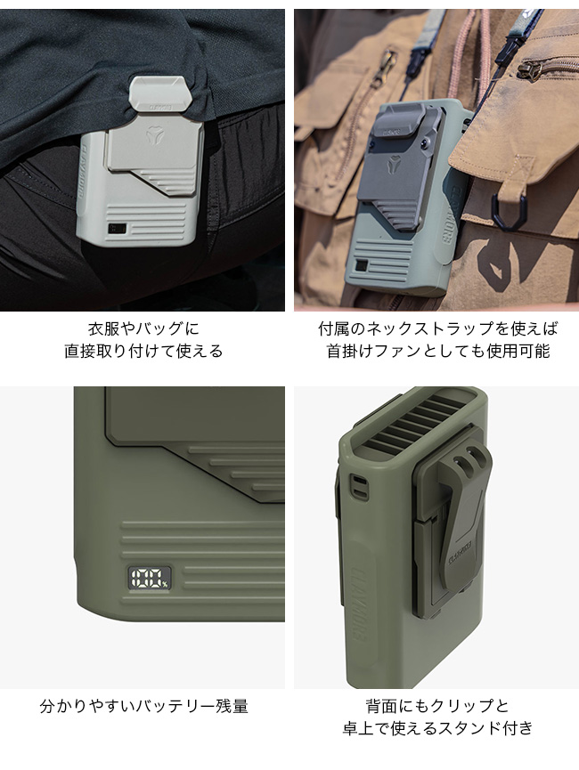 クレイモア クリップファン CLAYMORE CLIP FAN CLFN-CL01B 扇風機 ハンディファン ネックファン フィールドファン 卓上 オフィス フェス 通勤 通学 旅行 トラベル キャンプ アウトドア
