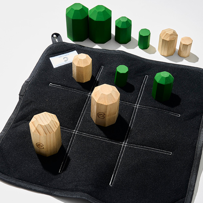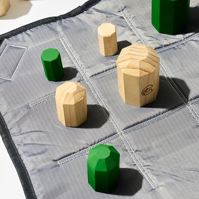 さらに、中央にはマス目のデザインステッチを施しており、自社商品(cancan CAPS)をミニマムの駒だけで運びつつ、遊ぶことも可能です。